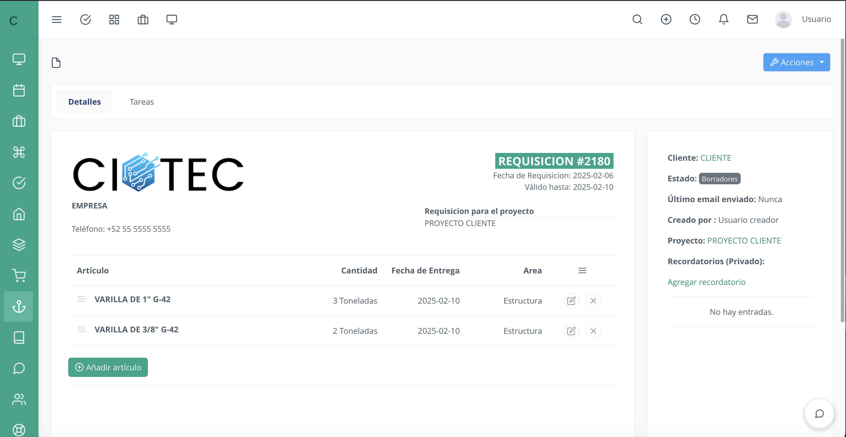 2. *Gestión de inventarios y materiales*: Un ERP puede ayudar a gestionar los inventarios de materiales y equipos, asegurando que los materiales necesarios estén disponibles en el momento adecuado.